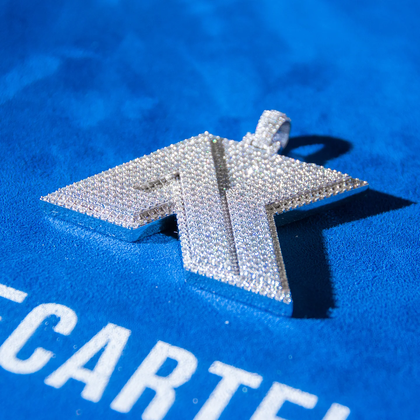 IceCartel™ exclusive "AK" Custom Moissanite Pendant is now available, made with a base of 925 sterling silver and PVD plated with a thick layer of 14K Gold.