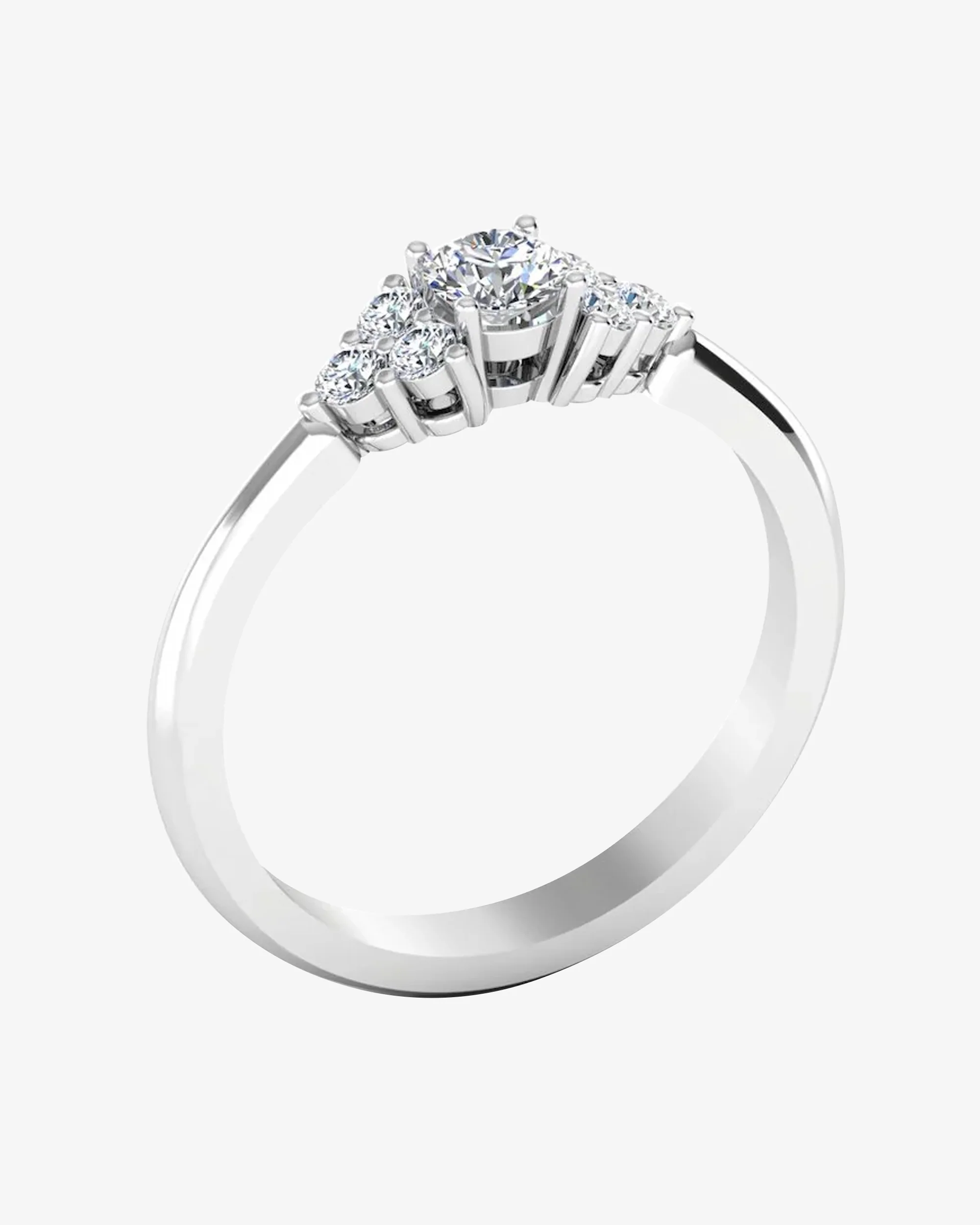 This Round Cut Petite Moissanite Engagement Ring has a gold weight of 2.75 grams for 14K gold, 3.28 grams for 18K gold, and a moissanite diamond weight of 0.43 CTW. There are 7 moissanite stones on this ring: the center stone measuring 4x4MM. This ring is placed in a prong diamond setting.